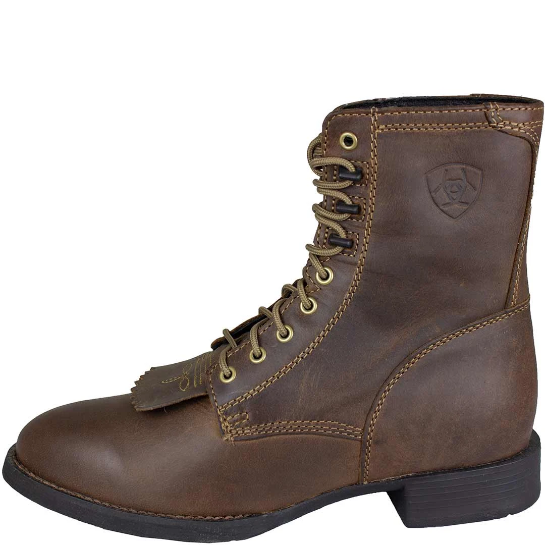 The Heritage Lacer Ariat cowboy boots offer durable comfort and performance. Made with full grain leather, these boots lace up the front and have a removable kiltie for added protection and a traditional look. The Heritage Lacer is a boot that embodies the classic western lifestyle.