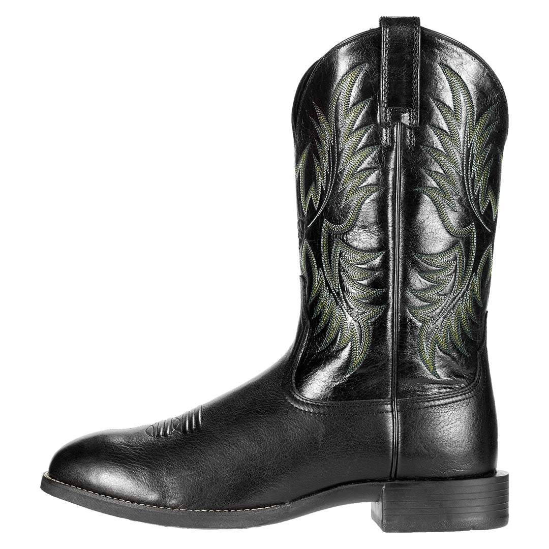 The Heritage Stockman Ariat cowboy boots offer traditional style with performance features. ATS technology and a duratread outsole keep these boots comfortable and durable while the six-row stitch pattern stays true to classic western style.