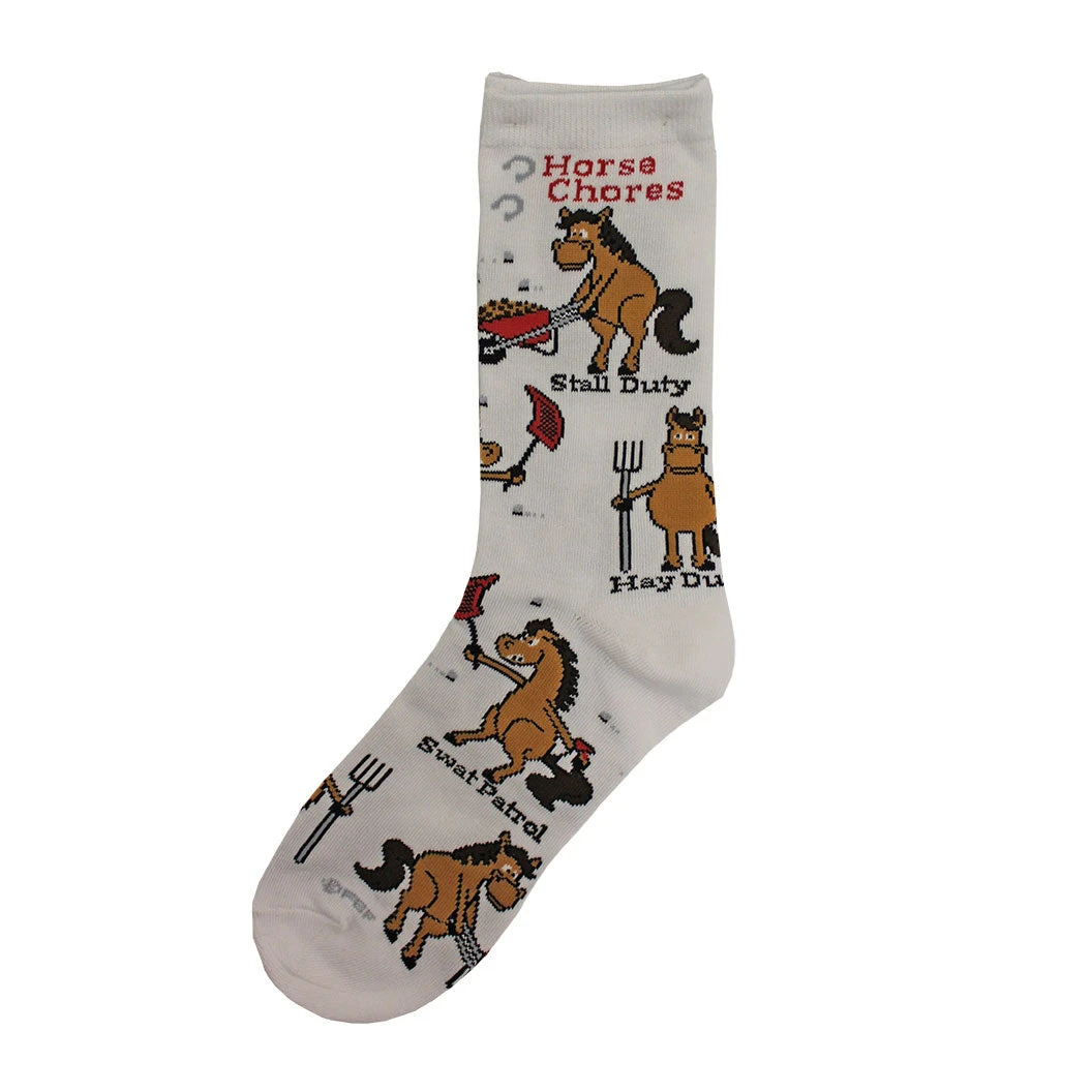 Time to feed the horses! These fun and comfy socks designed with western flavor from Austin Accent feature horse caricatures doing the chores.