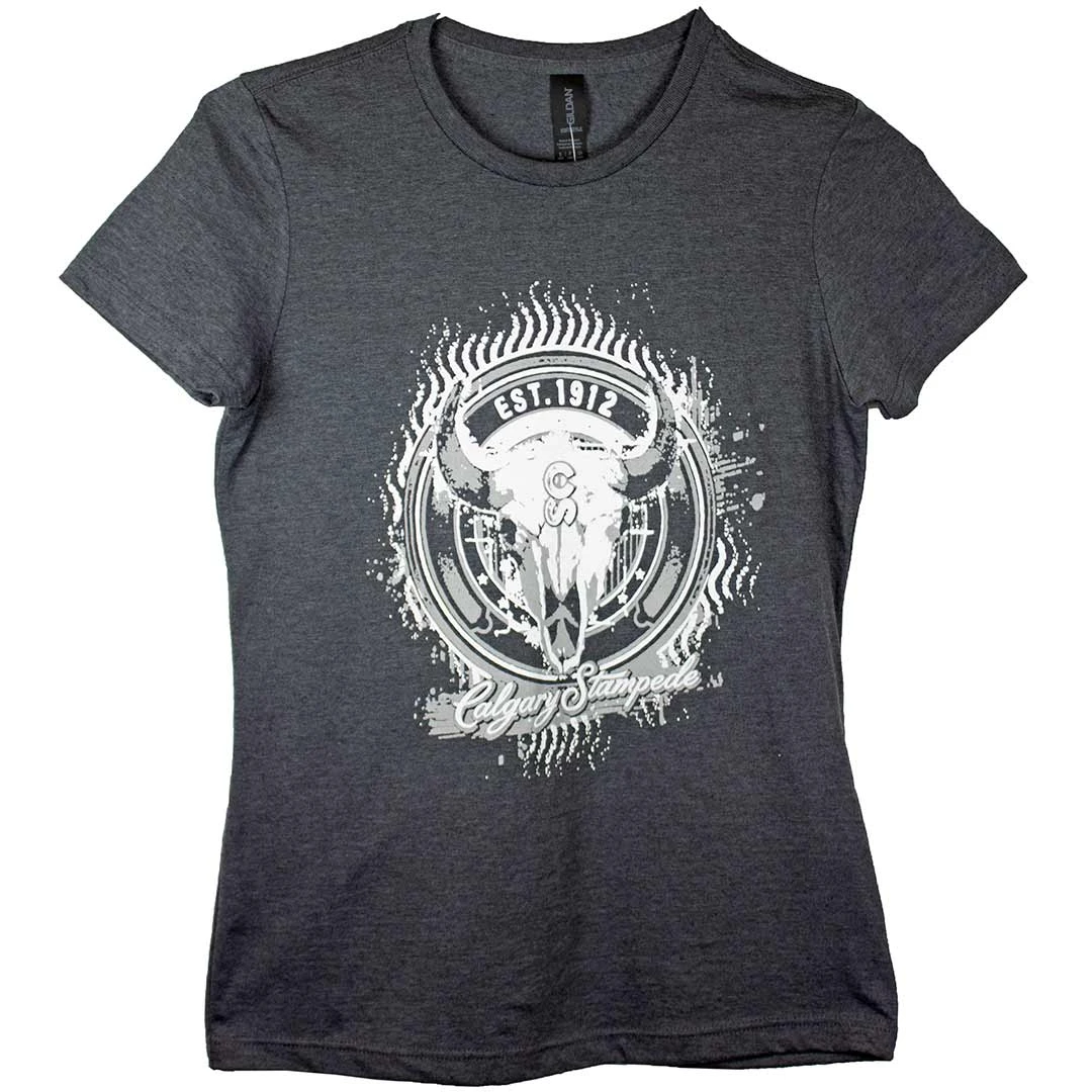 Custom made for the Calgary Stampede, this t-shirt features short sleeves, crew neck and a steer skull and Calgary Stampede graphic.
