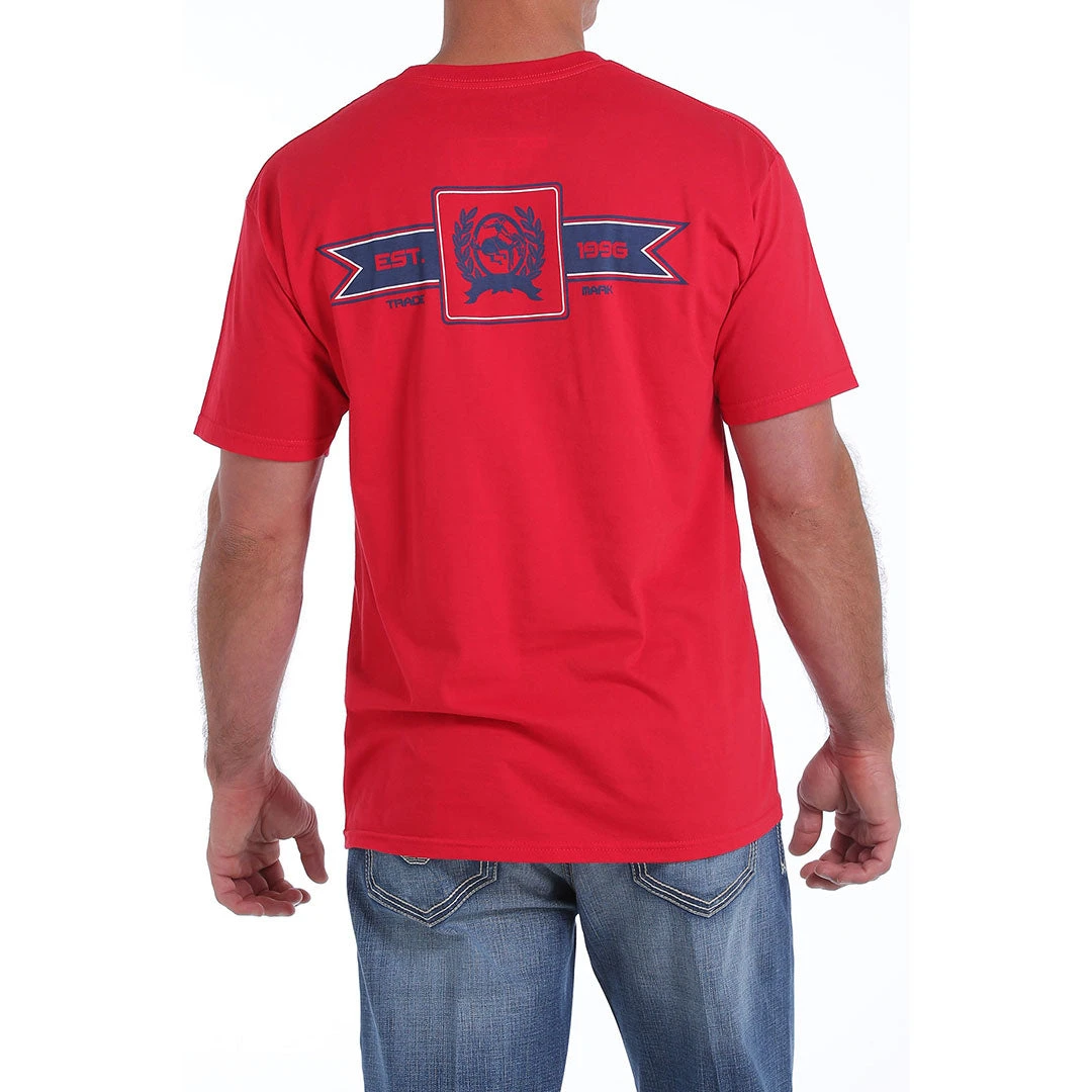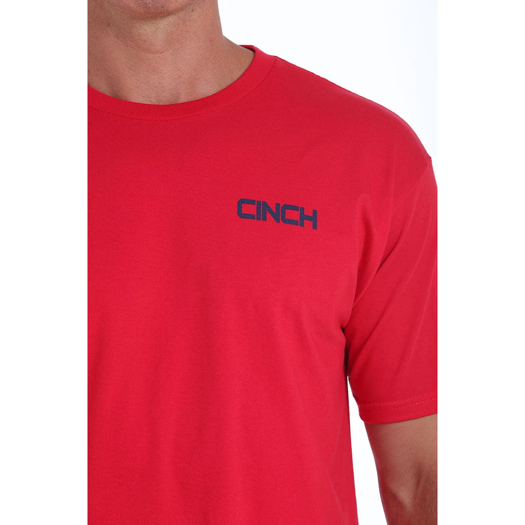 Bring on summer with a must-have cotton jersey crew neck tee like this red one from Cinch that is designed with both front and back front screen prints. This tee is perfectly suited for any kick-back weekend activities you have planned.