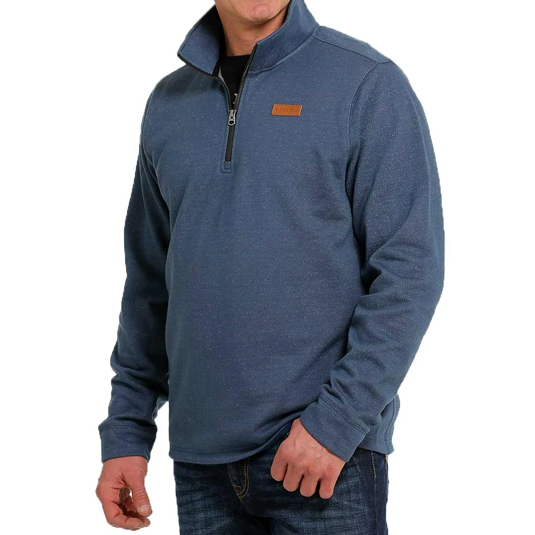 For wardrobe flexibility in the face of unpredictable weather, opt for a versatile layer like this good-looking blue sweater knit pullover crafted by CINCH. Comfortable, durable poly-rayon construction features a ¼ zipper and a faux leather logo patch.