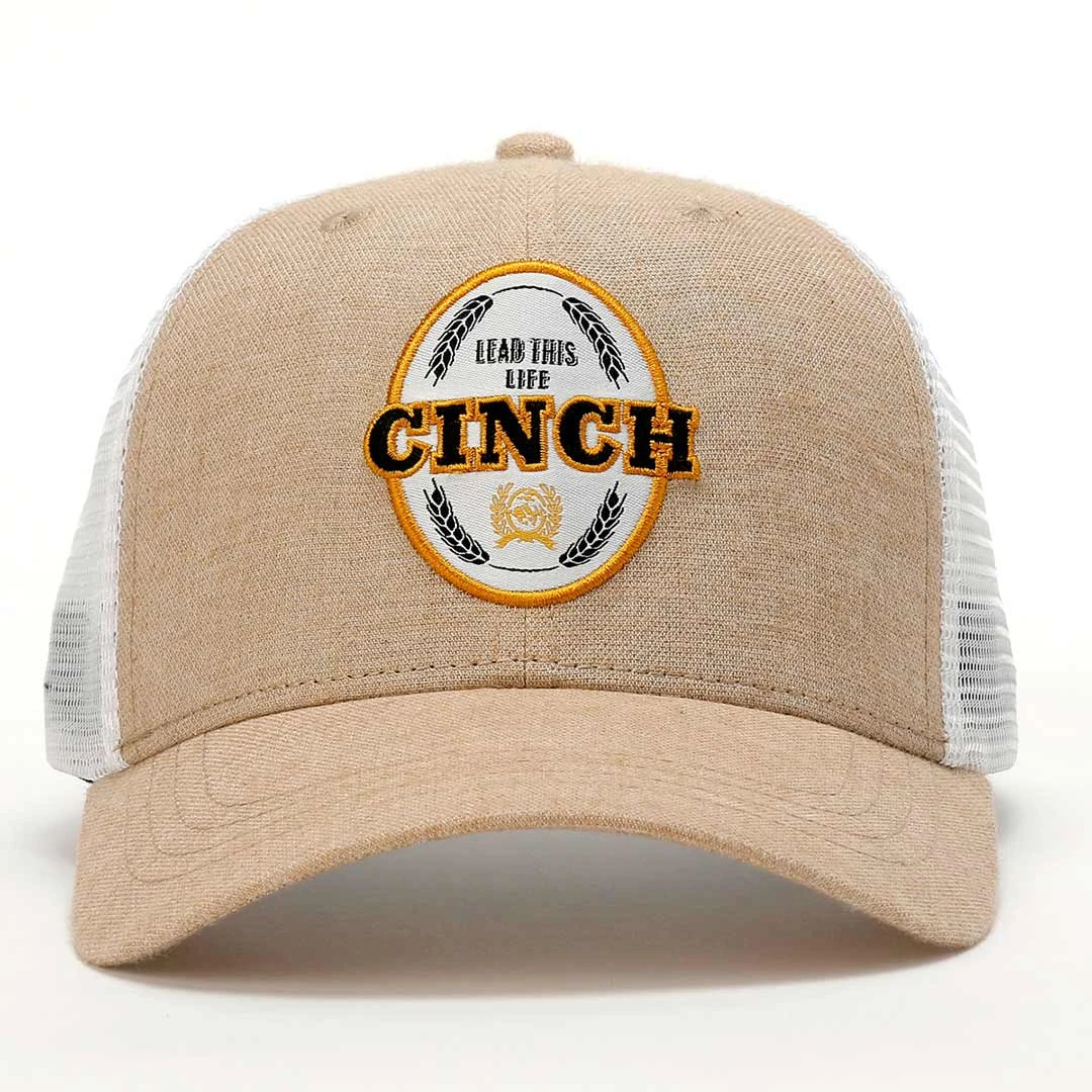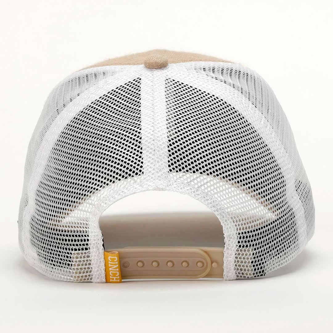 Protect your eyes and face from the sun wearing this all-season khaki mesh back trucker cap crafted by CINCH. Ideal for the ranch, the ball field or any favourite outdoor activity, this breathable cap features a front panel logo patch and back snap closure.