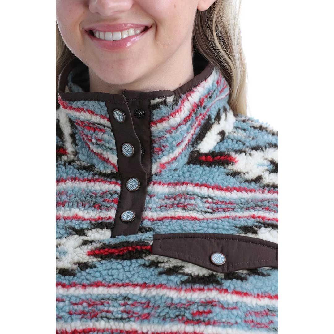 This seasonal pullover’s winning combination of reliable comfort and Southwest styling is hard to beat. Multicolored printed jacquard fleece construction features snap placket, front pockets for warming hands and Cinch logo label.