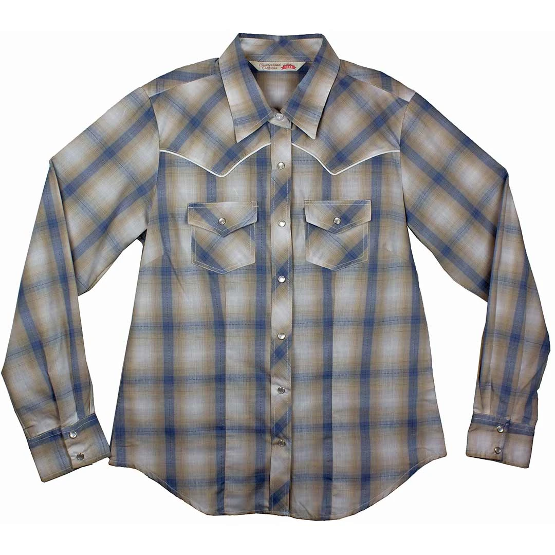 Rodeo Ready Cowgirl! This denim friendly plaid shirt from Ely Cattleman’s Cumberland Outfitters collection features an easy care fabric blend, long sleeves, pearlized snaps, western style piped yokes and front flap pockets with snaps.