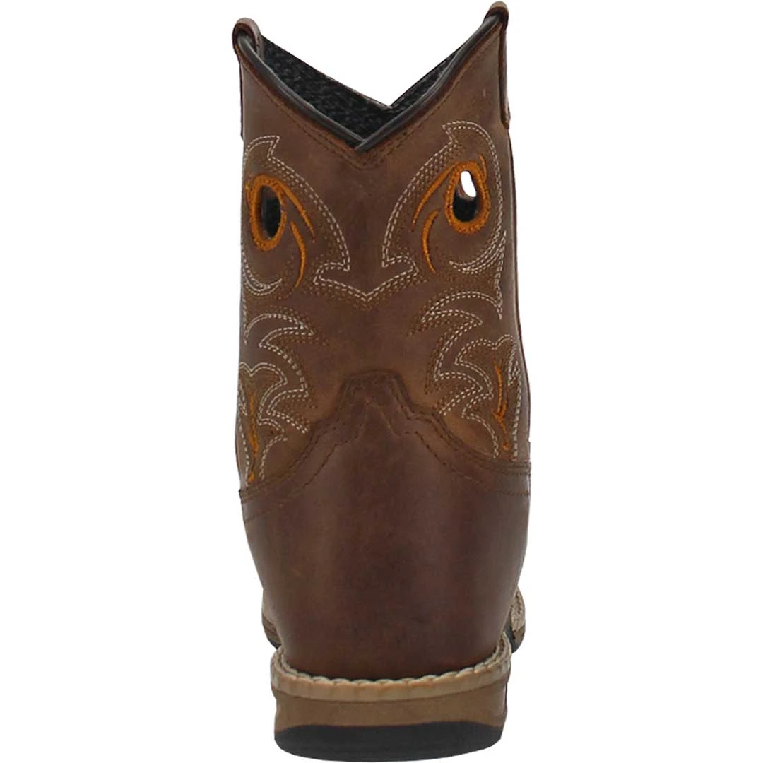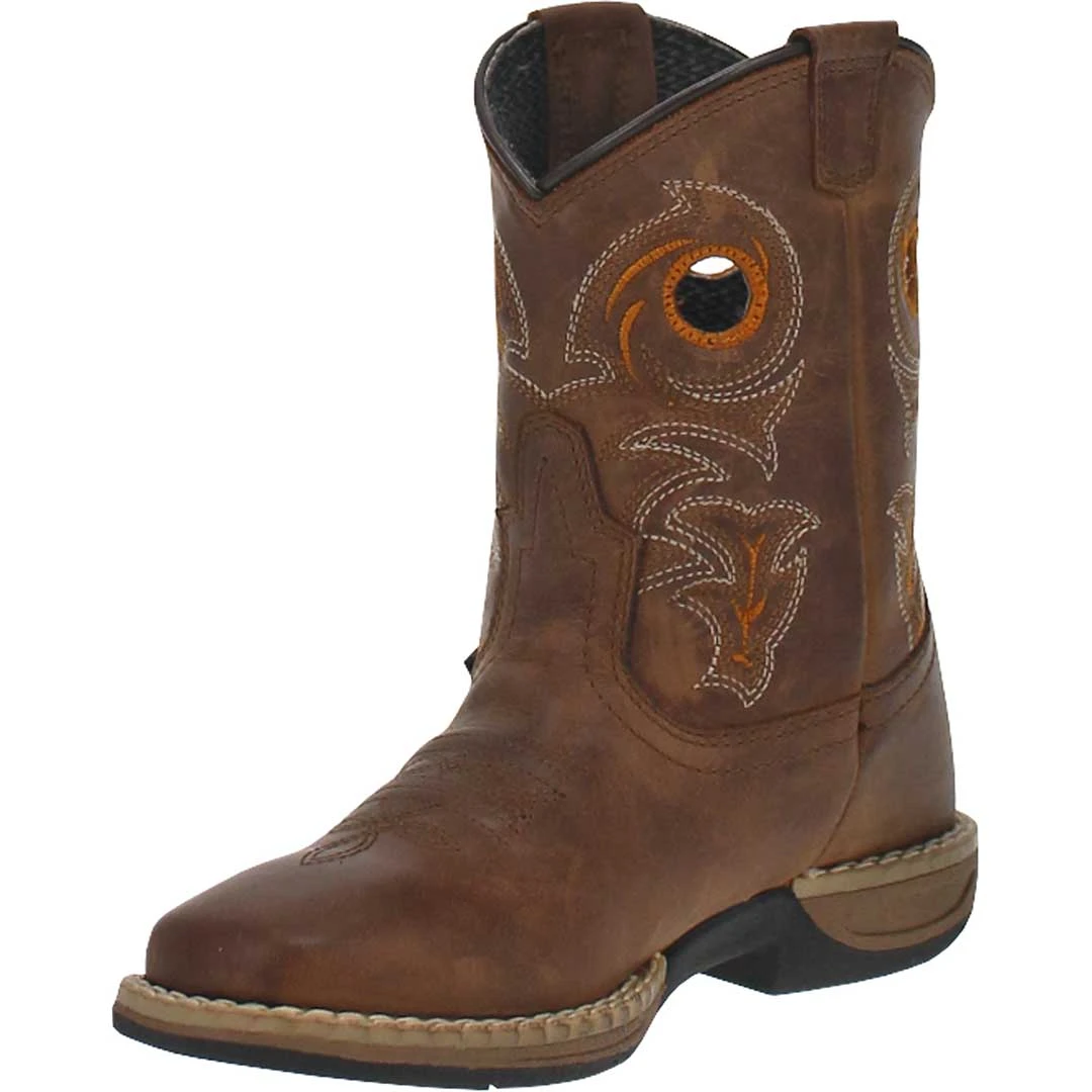 A perfect boot for style and comfort from Dan Post. This square toe boot features a brown leather footbed with embroidered 7″ leather shaft. For the little cowboy or cowgirl constantly on the go, the rubber sole is built for great traction.