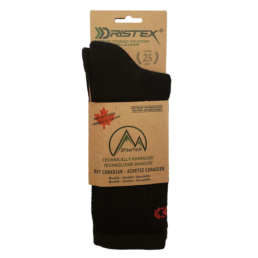 From Dristex these all in one 3FiberTecH midcalf everyday wearability sock will have you in comfort. Made in Canada from Merino Wool & Bamboo, the midcalf socks feature spandex in leg for stay-up, wicking panel on top of the foot, All Natural Fibers on inside of sock for superior comfort and nylon on outside of sock for durability. The socks are a value 2 pair pack.
