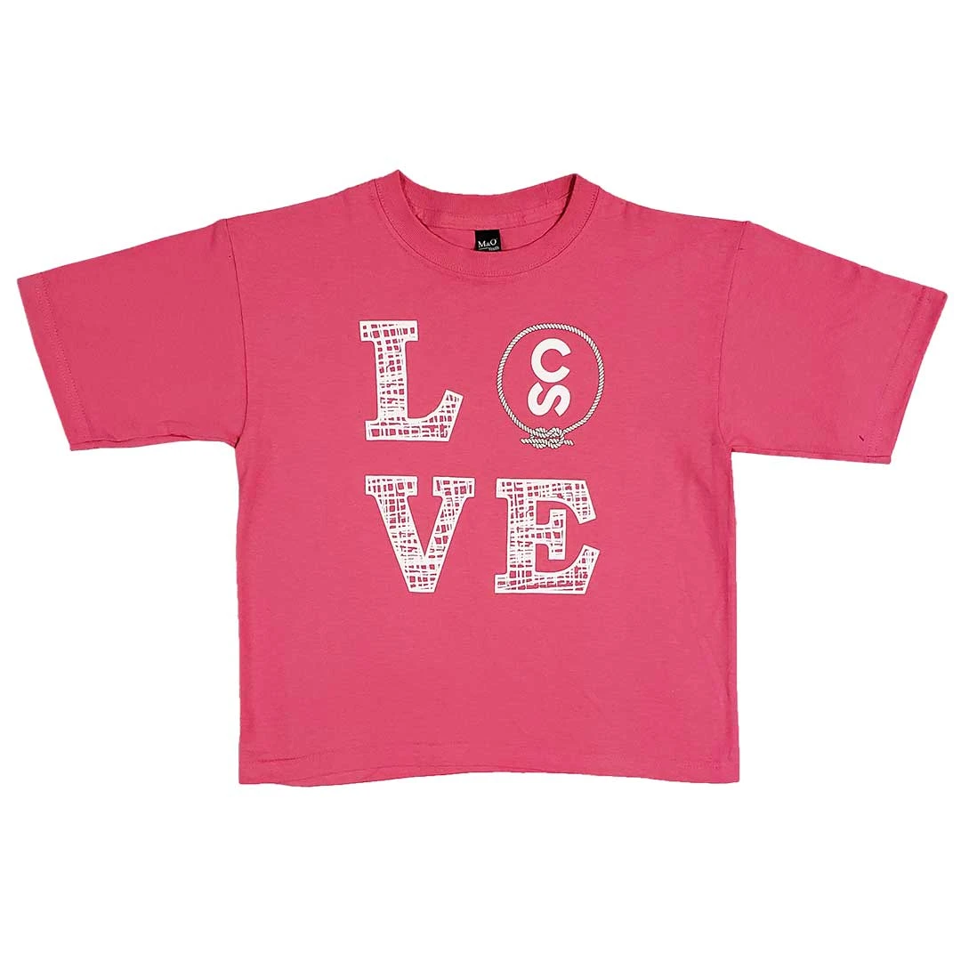 Custom made for the Calgary Stampede, this pink t-shirt features a cute L.O.V.E. design with a circle rope CS logo as the O.