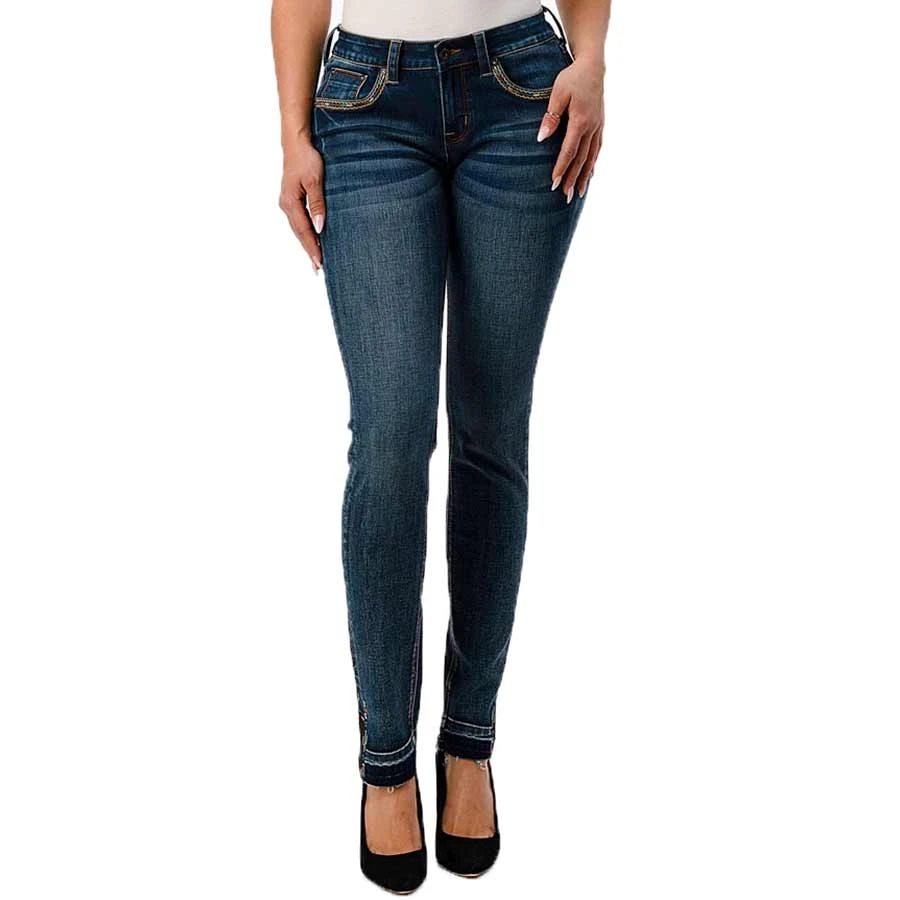 The Grace in LA women’s skinny jean shows off your best shape by featuring a higher rise. The denim fabric features a softer and higher stretch for exceptional comfort all while maintaining a denim look. The mid-rise creates a form-flattering fit for every curve. The jean is detailed with a border design on the back pockets, added embellishment on the front pockets, natural hand-sanding, and whiskering. They look like they’ve been yours forever.
