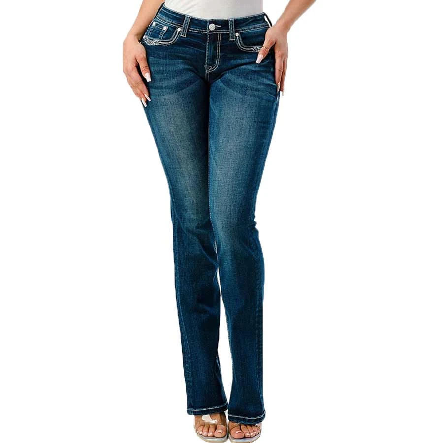 SKU: BGFTB 7213299400752 Categories: Bootcut, JEANS, WOMEN Tags: Color:Blue, Department:Women, EB61725, Jean_leg:Bootcut, Jean_rise:Mid Rise, Jeans, Jeans:women, Price_type:Regular, SC_Women's_Jeans_GraceinLA, Style_number:EB61725, Supplier:gra, Wash:Dark Wash