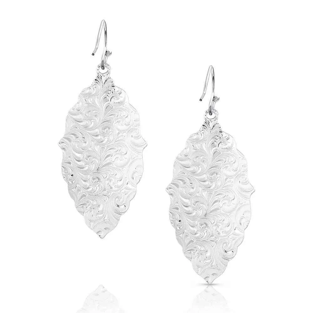 The Best Reflections Mirror Earrings embody everything that is Montana Silversmiths and illustrate their silver artistry. The classic silver earrings hang from hypoallergenic French wire. The earrings are in a lovely, scalloped shape that comes to a point at the bottom of the earrings. The center is adorned with gorgeous western bright-cut engraving.