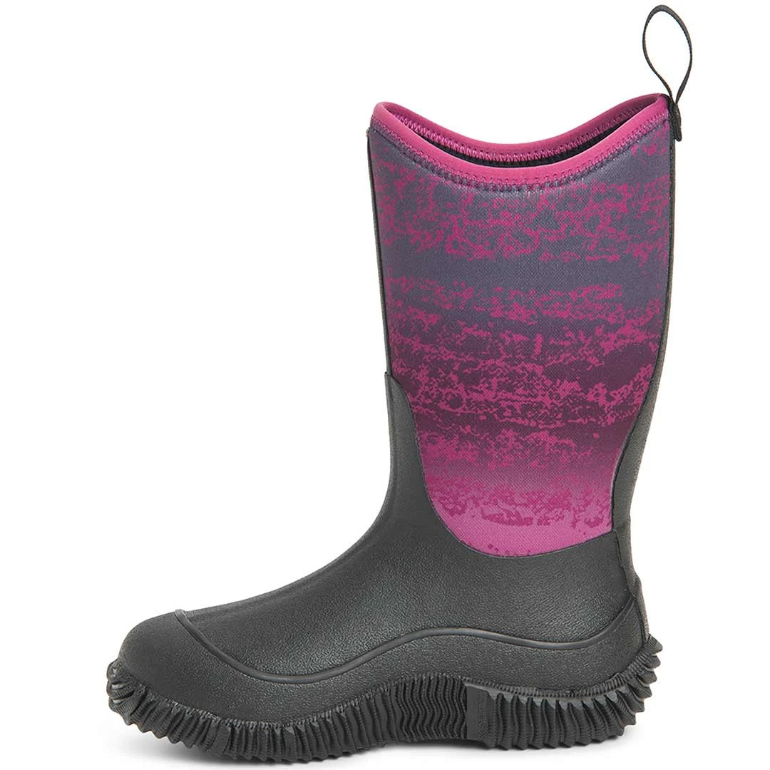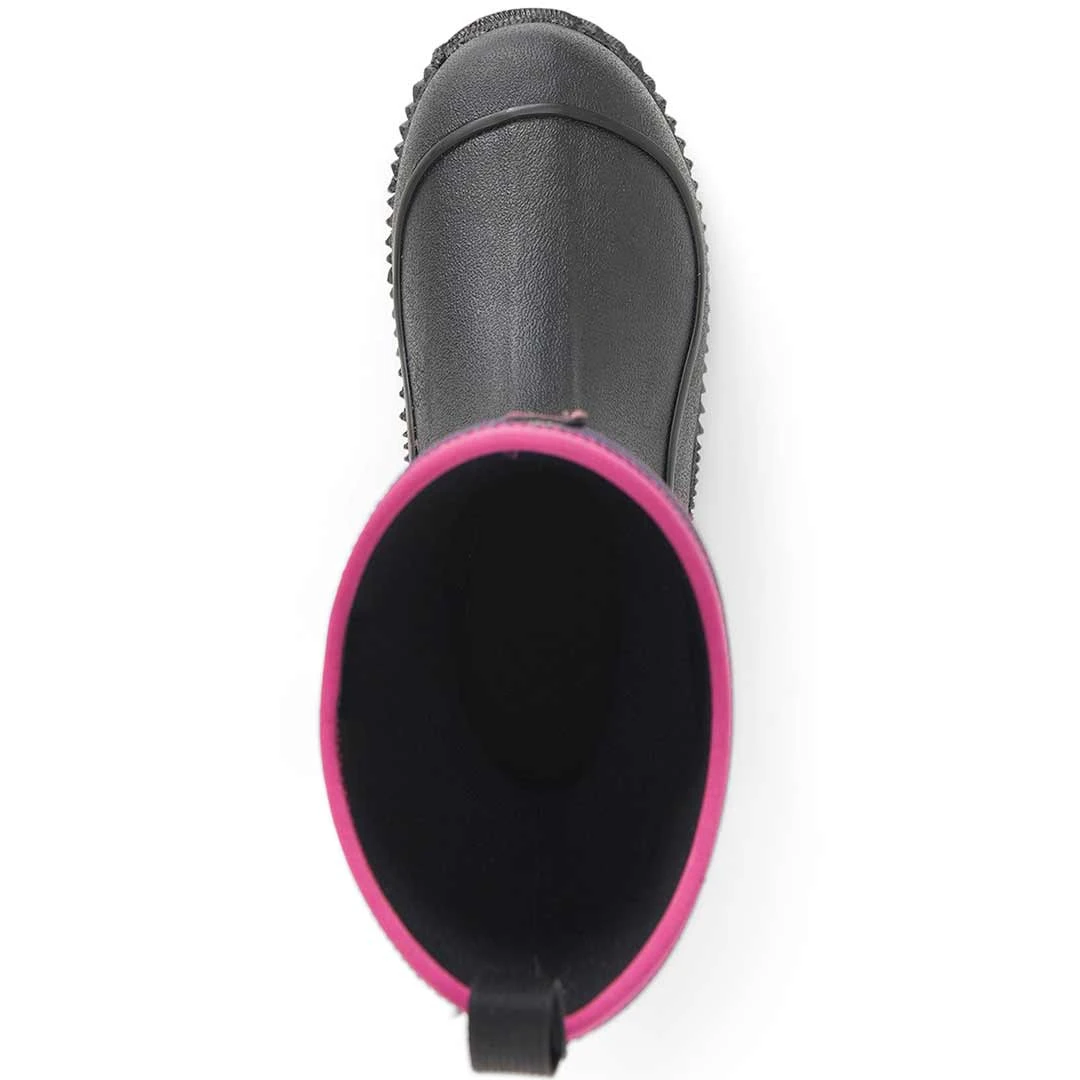 Keep children’s feet protected from wet, rainy weather and muddy conditions in Muck Boot Co.’s Hale Series Multi-Season Kids’ Rubber Boots. Comfort rated from subfreezing to 65 degree; F(18 degree), these children’s boots are crafted from soft, flexible, heat-retaining CR Flex-Foam neoprene for reliable three season wear. The extended high-grade rubber exterior provides additional toughness and waterproofing, The durable ribbed outsole is self cleaning for stability on slick sidewalks, and it also wraps around the boot for extra grip. These neoprene boots have a back tab and wide opening that make them easy to pull on and off without fuss, while the inner PM Mesh lining keeps active feet cool and dry. These kids’ boots are easy to match with just about any outfit.