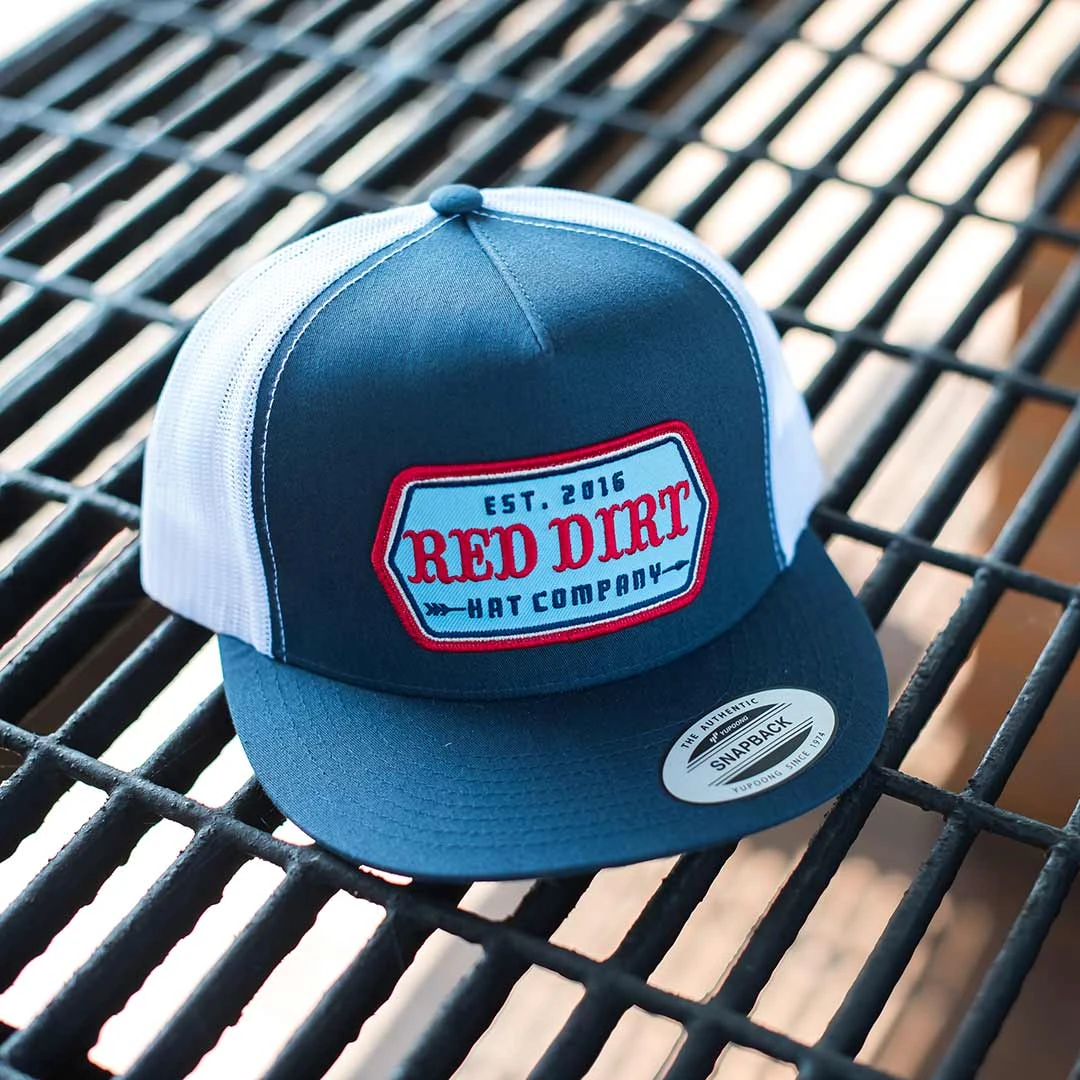 Navy and white Classic 5 panel style snapback cap featuring the “High Life” patch from Red Dirt Hat Co.