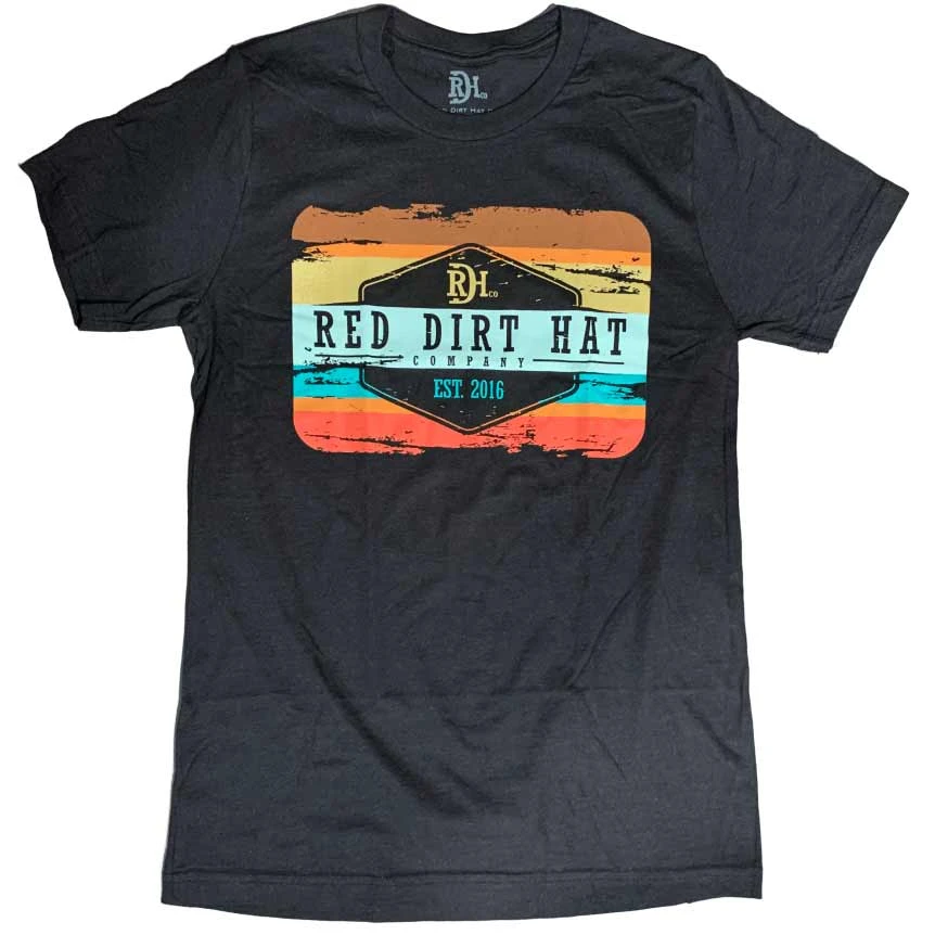 This heather black, unisex fit tee from Red Dirt Hat Co features the “Army Sunset” patch design.