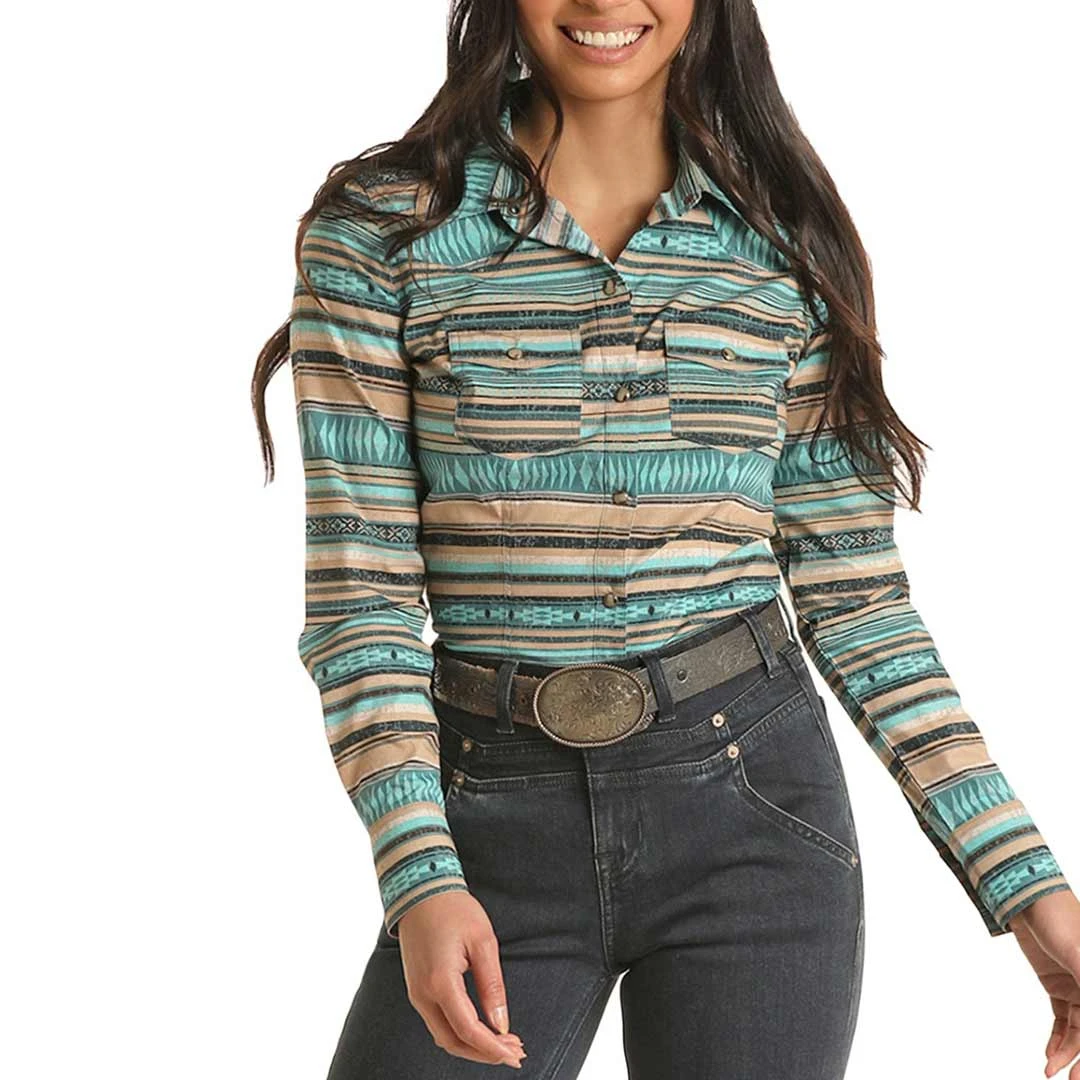 SKU: BGFTB 7240522072112 Categories: CLOTHING, Shirts & Tops, WOMEN Tags: Clothing, Clothing:women, Color:Turquoise, Department:Women, Price_type:Regular, RRWSOSR0PZ, SC_Women's_Apparel_Panhandle_Rock&RollCowgirl, Shirt_style:Snap, Sleeve_length:Long, Style_number:RRWSOSR0PZ, Supplier:pan
