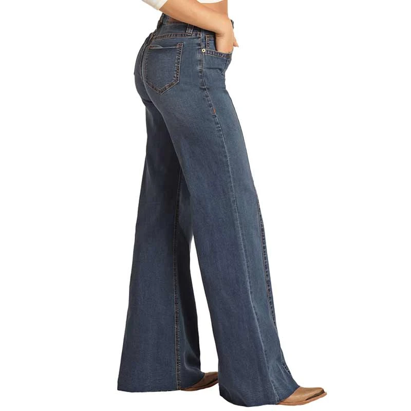 Take a note from the ’70s with a modern rendition of the palazzo pant done in denim. From Rock & Roll Denim, these women’s jeans feature a high rise, square pockets and a zip fly.