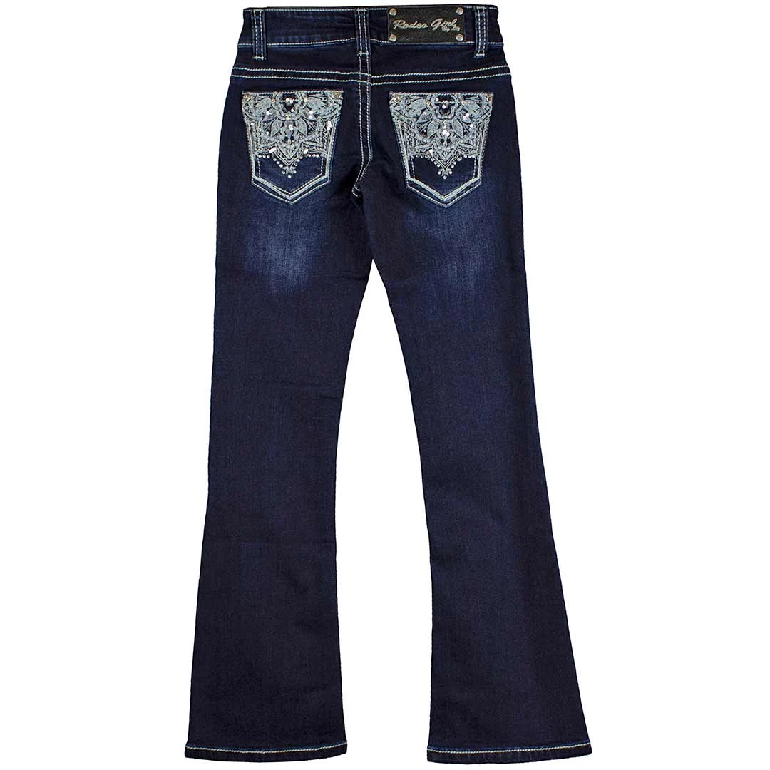 These stylish Rodeo Girl jeans feature fading for a worn look and mandala pocket embroidery.