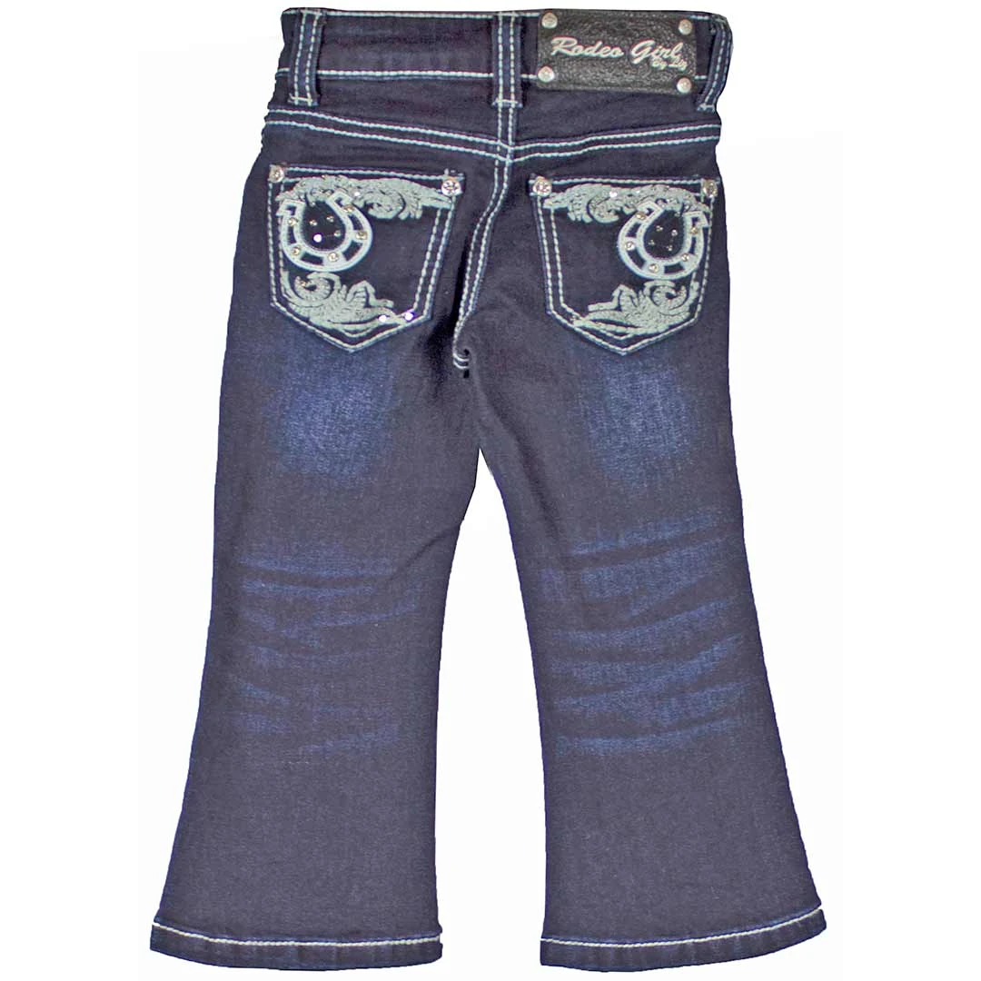 From Cowgirl Collection Rodeo Girl, every little girl will want a pair of these jeans. They feature an embroidered horseshoe design on the back pockets with a few sparkle gems to add bling little girl loves.