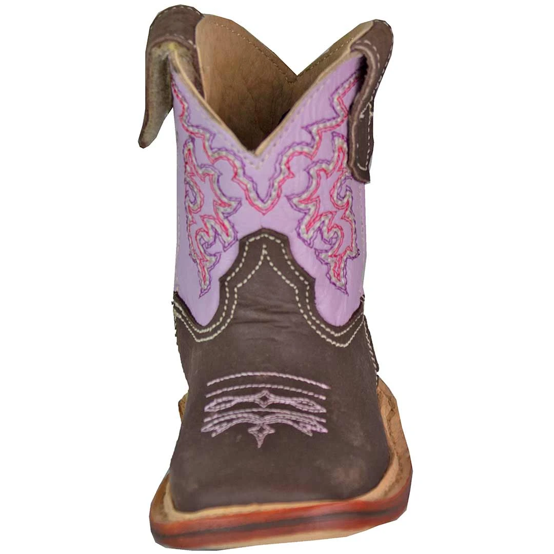 This authentic girls’ Roper cowgirl boot features a pink shaft and brown vamp, with 5 row classic stitching and pink piping accents.