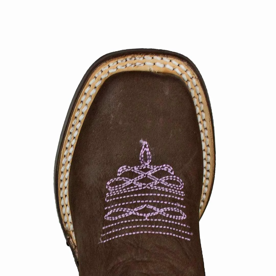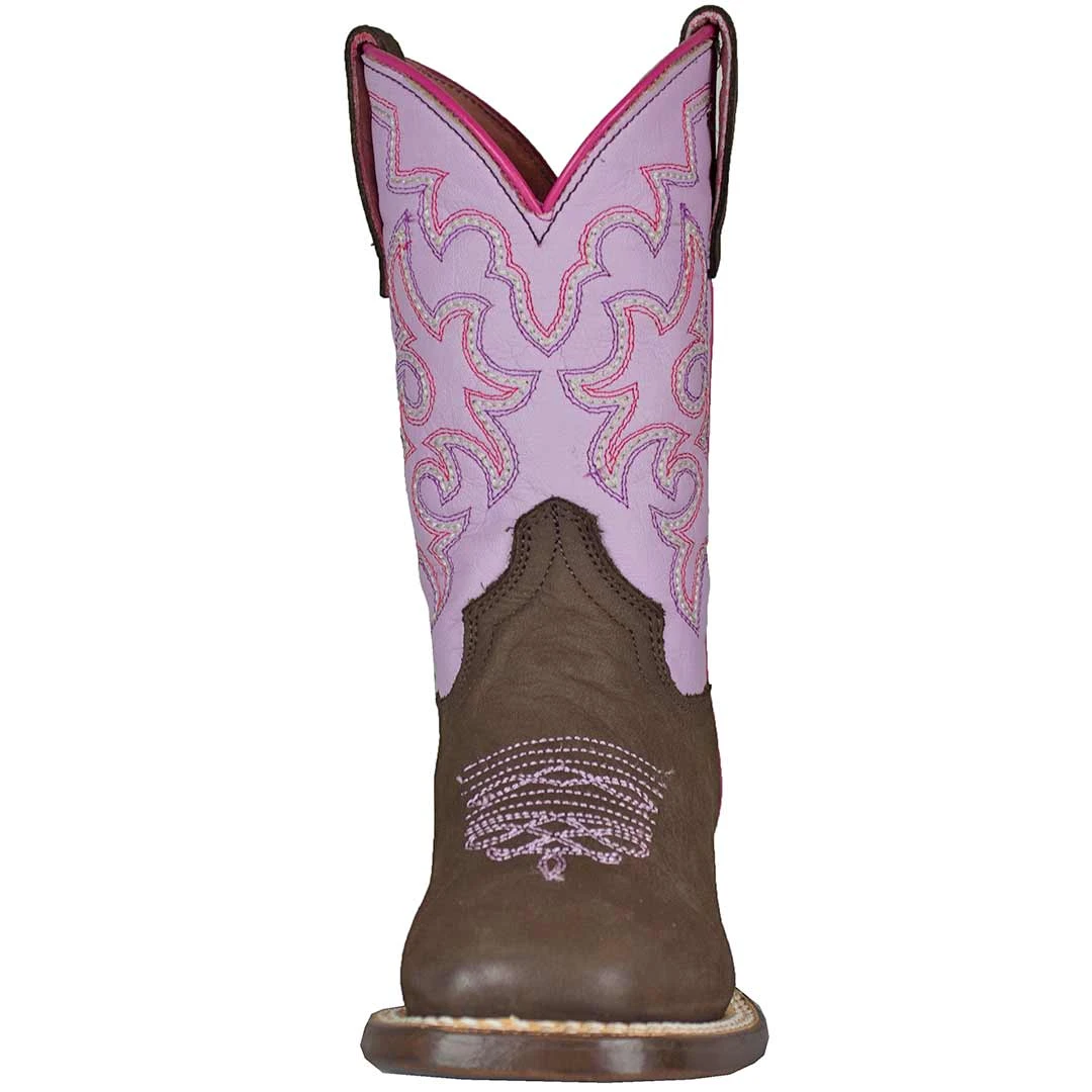 This authentic girls’ Roper cowgirl boot features a pink shaft and brown vamp, with 5 row classic stitching and pink piping accents.