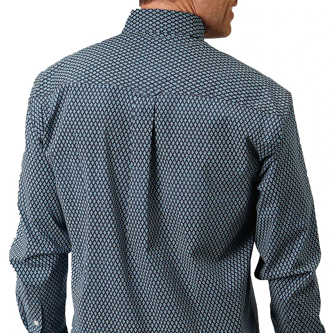 This geographic print men’s shirt from Roper features pointed yokes, two snap flap pockets and snap cuffs. Perfect for the office or a night out.