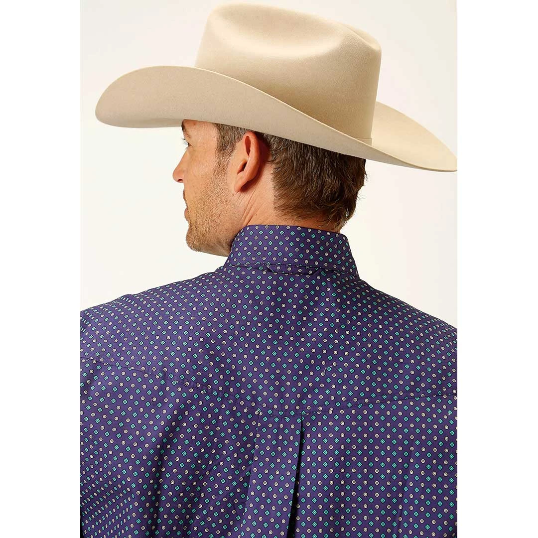 This geographic print men’s shirt from Roper features a 1 point back yoke with pleat, 2 button pockets and button cuffs. Perfect for the office or a night out.