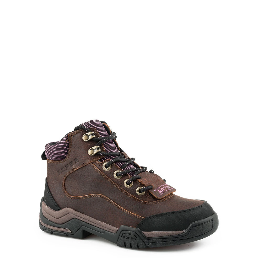 Roper Horseshoe casual lace-up boots incorporate all the important features of a western boot. Western lace up styling, brown tumbled leather and purple trim are combined to create an updated Kiltie Horseshoe that gives you the freedom of being able to work, play and ride all in the same shoe!