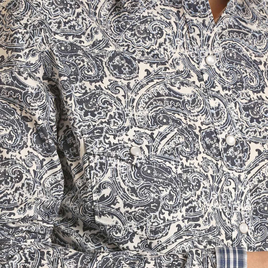 From Panhandle’s Rough Stock line this blue paisley print with contrast under cuffs adds that extra detail to an already standout shirt.