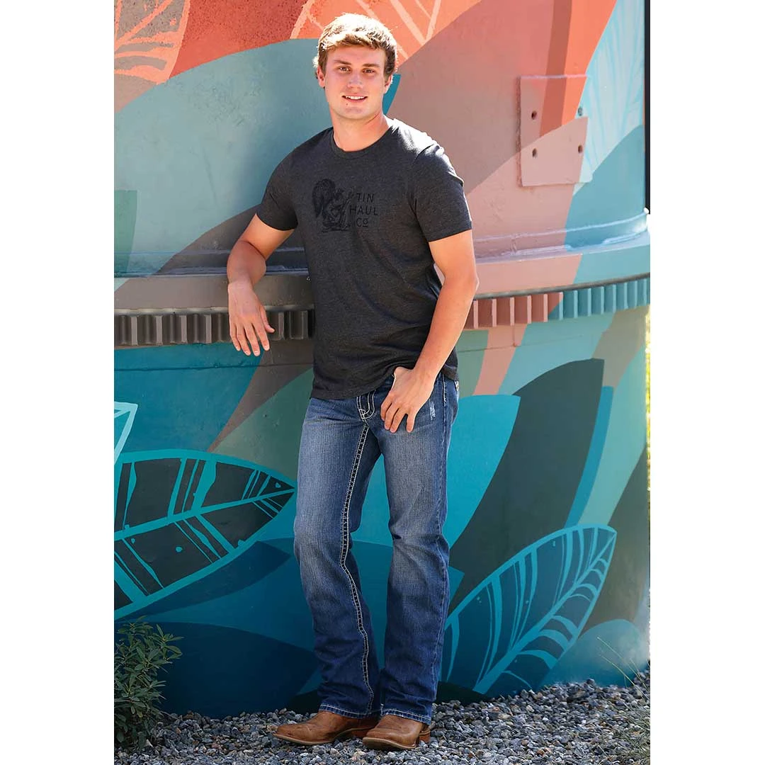 Tin Haul brings you casual comfort with this crew neck t-shirt. With a banjo playing squirrel graphic it is sure to be a conversation starter!
