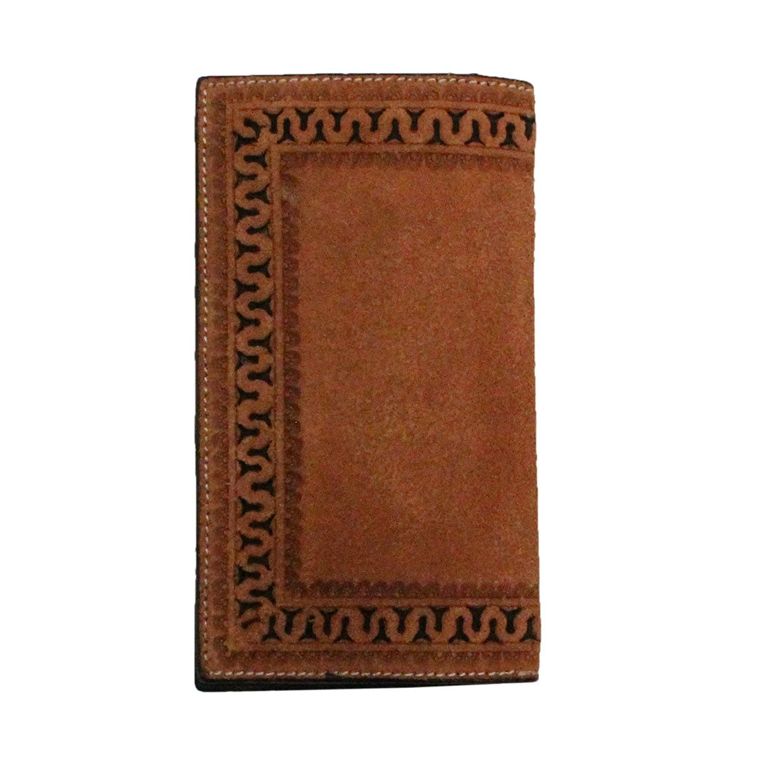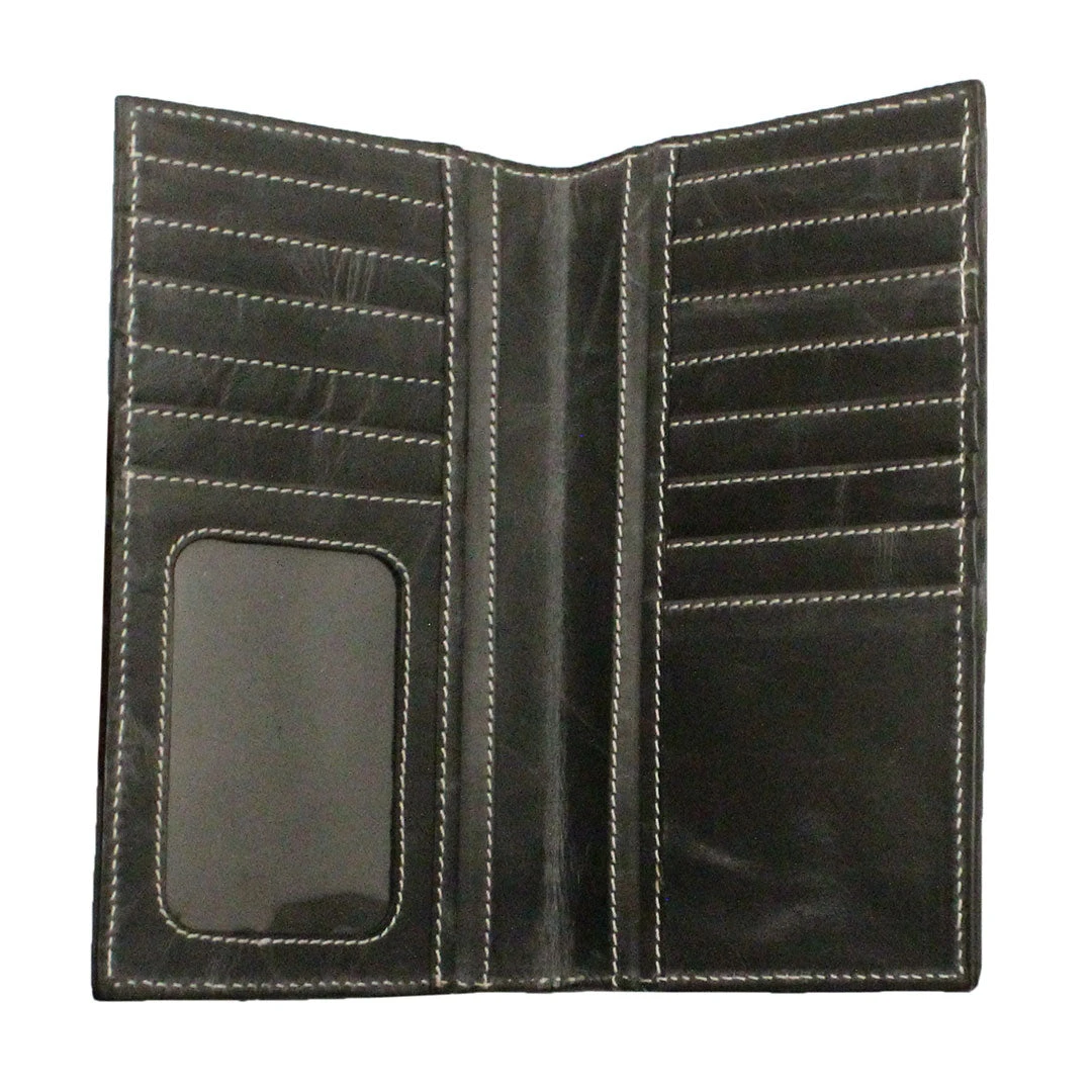 From Western Fashion Accessories this wallet by Twisted X features rodeo rough leather with a beaded starburst pattern and tooling around the edge.