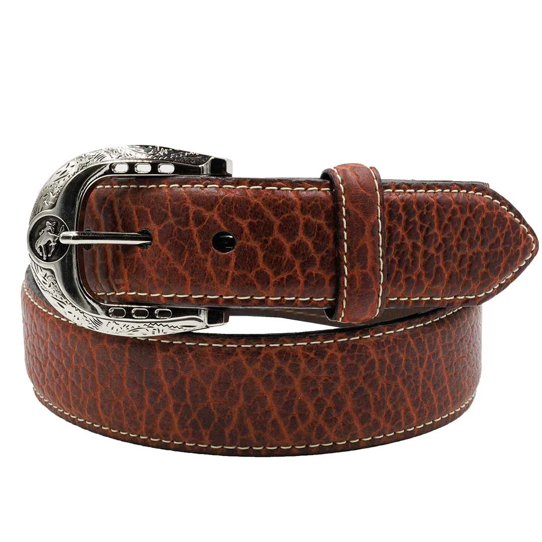 You’ll be ready for the party in this glazed genuine bison leather belt, featuring a medium pull-up with rich undertones, hand-painted flat edge, contrasting single stitch, lined with full grain leather, bullet tip, single leather keeper, and nickel polish buckle to really make that statement.