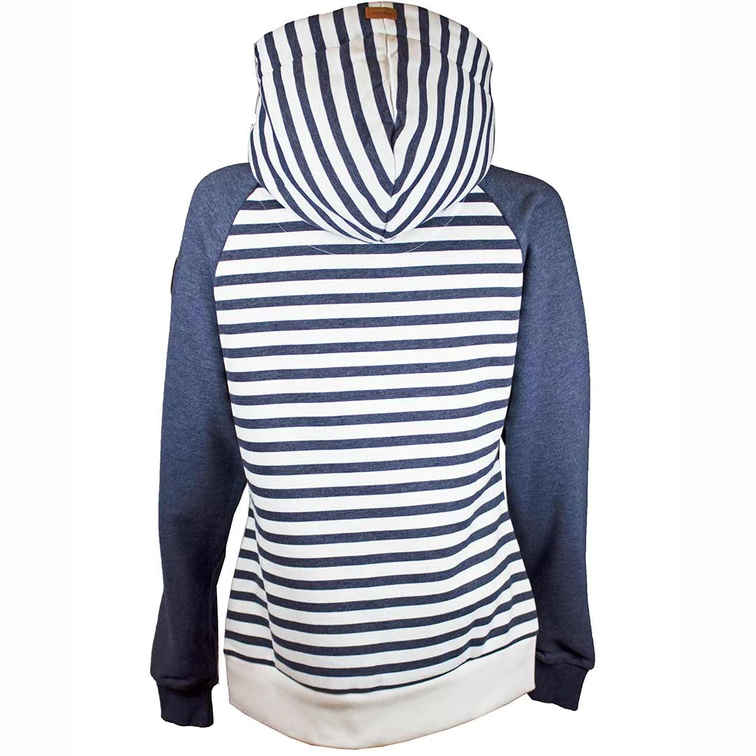 From Wanakome, this women’s striped terry hoodie will be your new favourite. It has a cowl neck hood, front kangaroo pocket and features a 1/4 zip front.