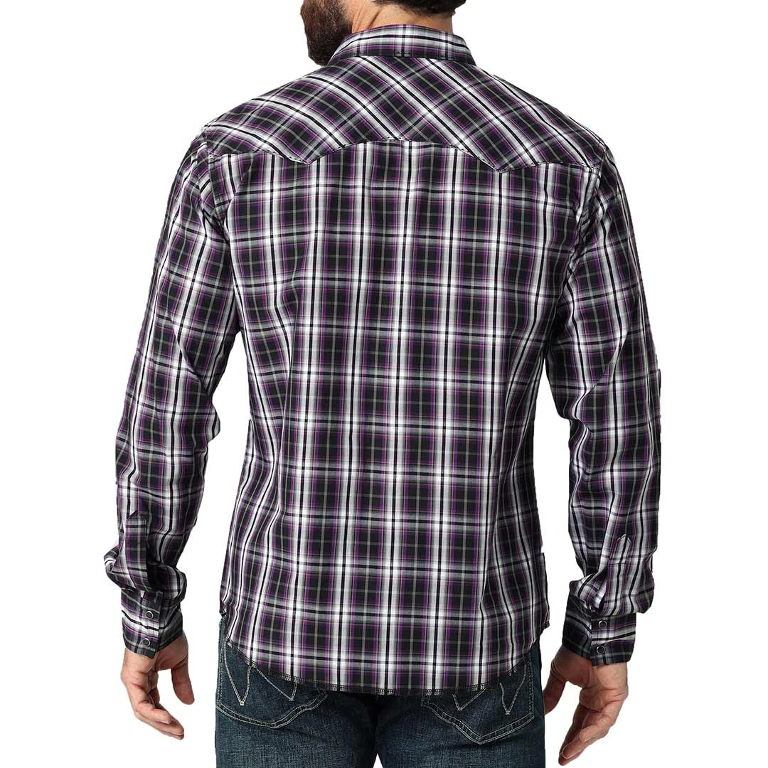Serving that classic Wrangler style at its best, this men’s long-sleeve fashion western snap plaid shirt comes with all the distinctive details you know and love. It features rancher’s crease styling in the front, a pointed front yoke, a sawtooth-inspired back yoke, two snap cuffs, double snap flap pockets at the chest, and a curved hem for versatility. It’s made of cotton to keep you comfortable all year long and it features a modern fit. You can leave it untucked or tuck it into your favourite Wrangler jeans, with a t-shirt underneath if you feel like layering.