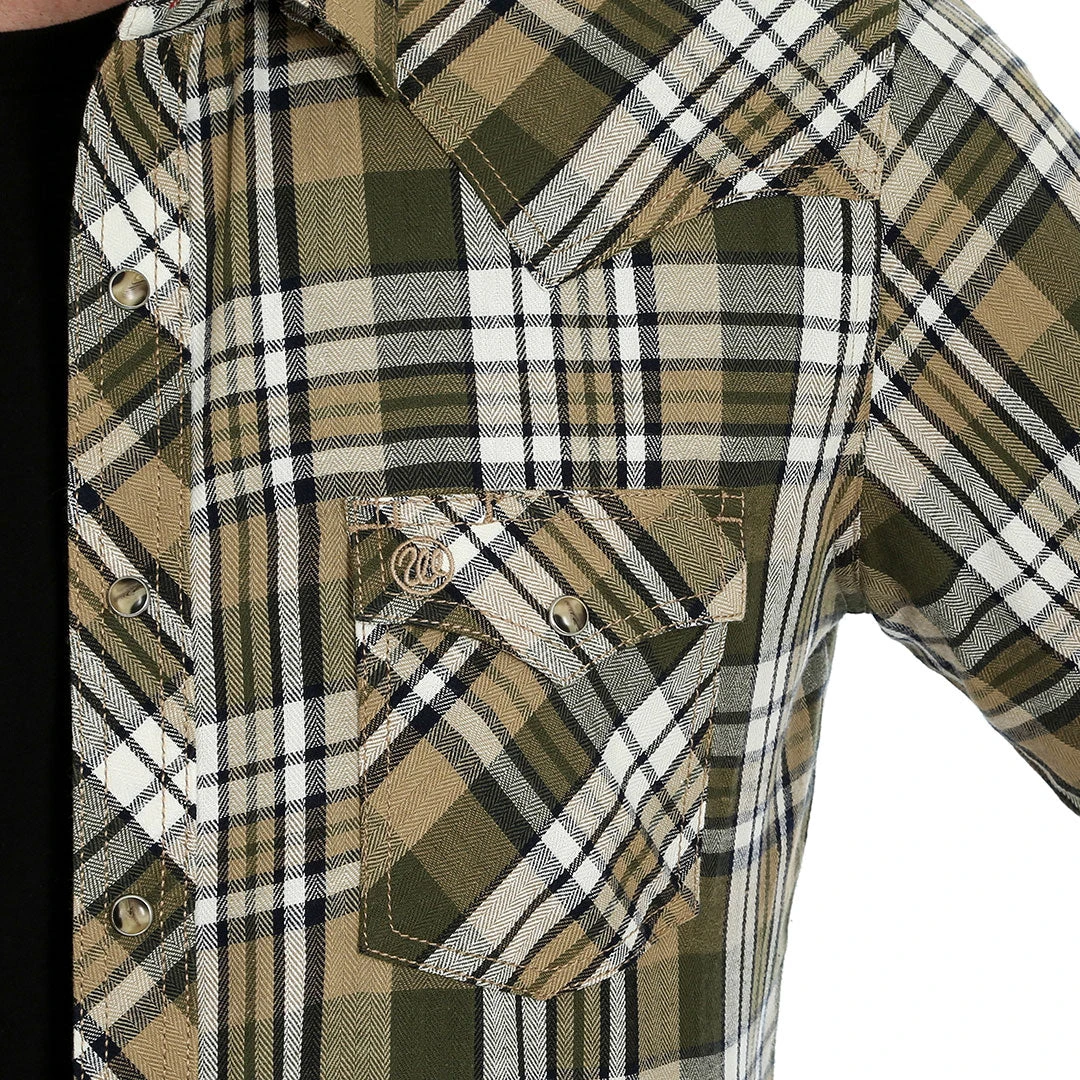 This is a wear-anywhere shirt from Wrangler that will never let you down. Perfect for casual events or laid back nights, it features a versatile, durable fabric that will pair perfectly with all of your Wrangler jeans and graphic tees. Classic Western yokes, double needle stitching, and contrast trim on inner cuffs makes this shirt one of a kind.